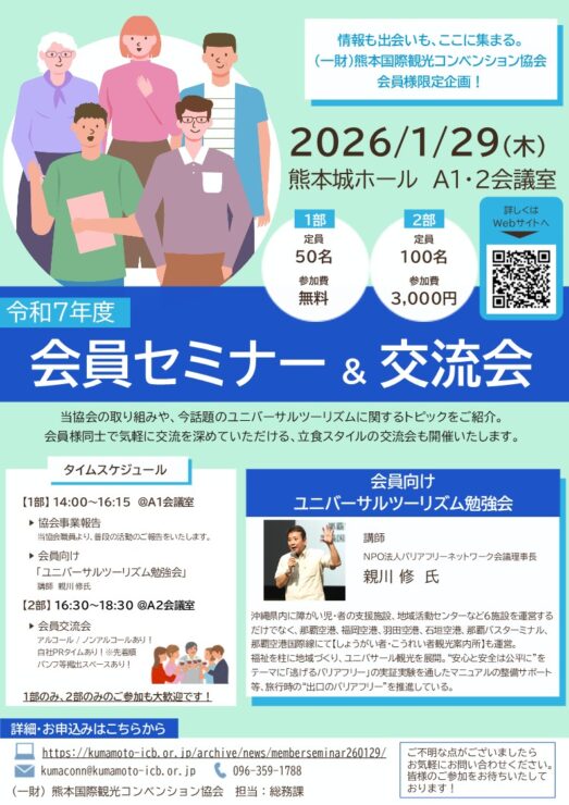 当協会の活動報告に加え、「ユニバーサルツーリズム」をテーマに誰もが安心して楽しめる観光のかたちについて専門家からわかりやすくお話しいただきます。日々の業務や今後の取り組みのヒントとして、ぜひご活用ください。