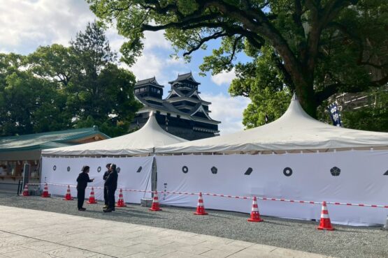 ・屋内からも境内からも、熊本城天守閣や復旧工事中の石垣など、特別な景観がご覧いただけます。