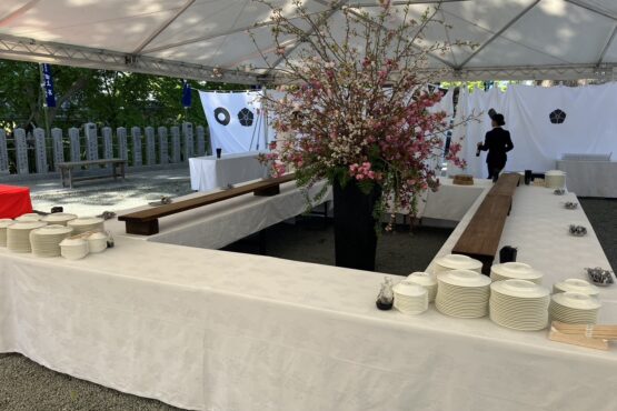 - 屋内(客殿天城)~約100名(着席:約70人、立食:100名)、屋外(境内)~約200人(立食)