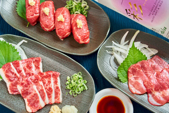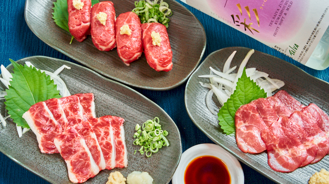 「農場大国」熊本ならではの食材である「新鮮な野菜、赤牛や地鶏、天草産鮮度抜群の魚介」を使った地産地消のオリジナル料理や郷土料理、熊本の美味しい水で作った地酒等をご堪能ください。