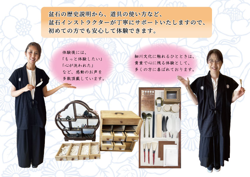 湧水亭2階では、本格的な細川流盆石体験が楽しめます♪